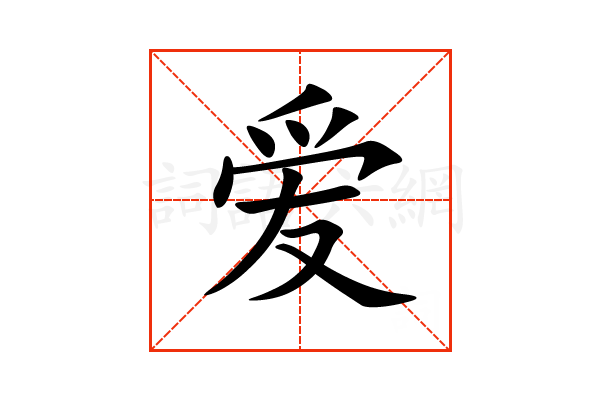 爱,通用规范汉字,一级汉字,序号1987,读音是(ài),爫部,共10画,形声字,上下结构,五行属土。