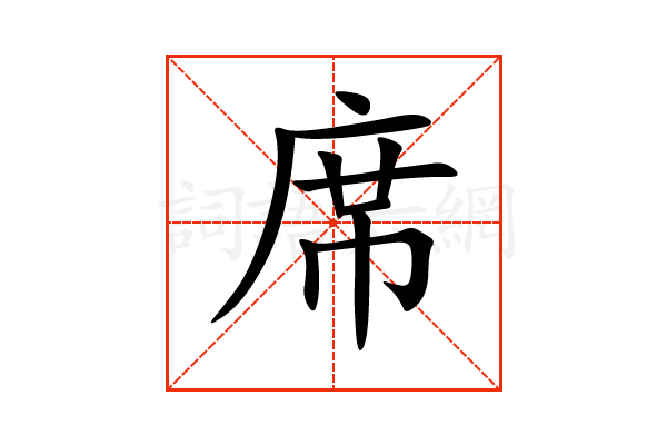 席,通用规范汉字,一级汉字,序号2023,读音是(xí),巾部,共10画,会意字,半包围结构,五行属金。