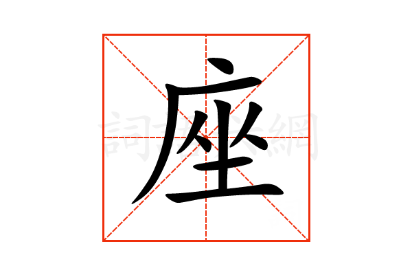 〔座〕字是半包围结构,可拆字为“广、坐”,五行属金。