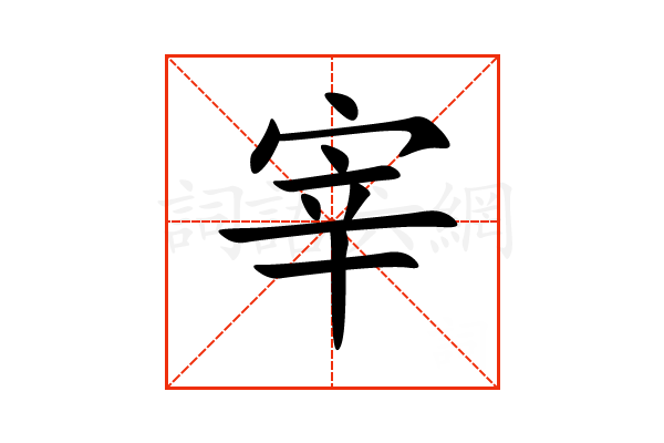 宰,通用规范汉字,一级汉字,序号2106,读音是(zǎi),宀部,共10画,会意字,上下结构,五行属金。