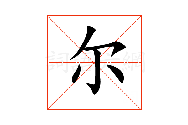 尔,通用规范汉字,一级汉字,读音是(ěr),小部,共5画,形声字,独体字,五行属火。