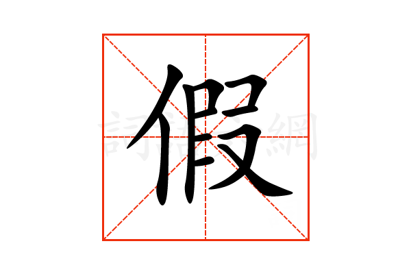 假,通用规范汉字,一级汉字,序号2337,多音字,读音是(jiǎ 或 jià),亻部,共11画,形声字,左中右结构,五行属木。
