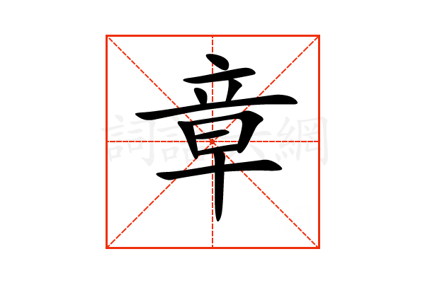 章,通用规范汉字,一级汉字,序号2389,读音是(zhāng),音部,共11画,会意字,上下结构,五行属火。