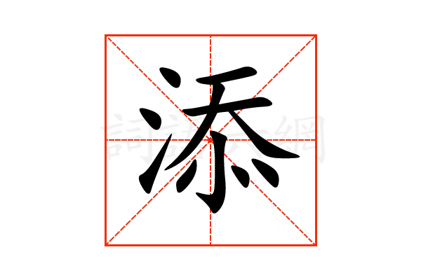 添,通用规范汉字,一级汉字,序号2411,读音是(tiān),氵部,共11画,形声字,左右结构,五行属水。