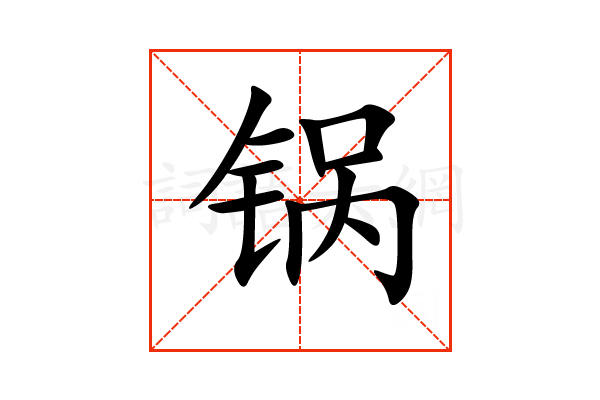 〔锅〕字造字法是形声。从金,咼( kuā )声。本义是炊事用具,圆形中凹,多用铁制。