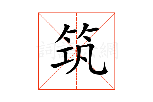 筑,通用规范汉字,一级汉字,序号2682,多音字,读音是(zhù 或 zhú),⺮部,共12画,形声字,上下结构,五行属木。