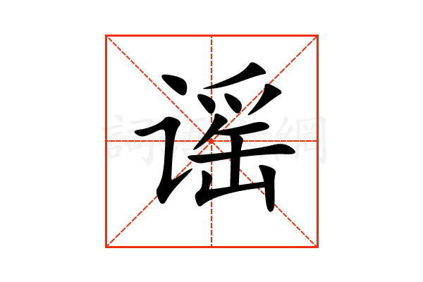 谣,通用规范汉字,一级汉字,序号2796,读音是(yáo),讠部,共12画,形声字,左右结构,五行属火。