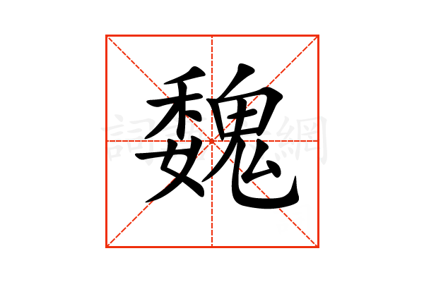 魏,通用规范汉字,一级汉字,读音是(wèi),鬼部,共17画,形声字,左右结构,五行属木。