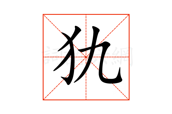 〔犰〕字是左右结构,可拆字为“犭、九”,五行属木。