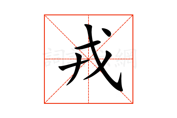 〔戎〕字是半包围结构,可拆字为“戈、𠂇”或“戈、十”,五行属木。