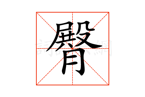 〔臀〕字是上下结构,可拆字为“殿、⺝”或“殿、⺼”,五行属火。