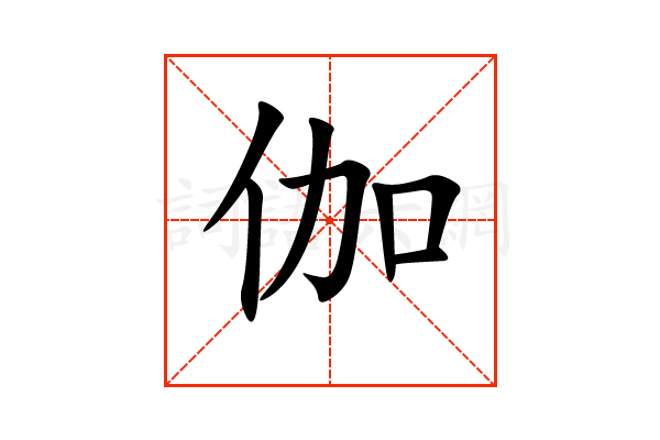 伽,通用规范汉字,二级汉字,序号3735,多音字,读音是(qié、jiā 或 gā),亻部,共7画,形声字,左右结构,五行属木。