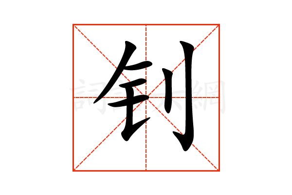 〔钊〕字造字法是会意。从刀从金。表示用刀削金属。本义是磨损;削损。