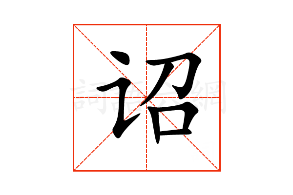 〔诏〕字是左右结构,可拆字为“讠、召”,五行属金。