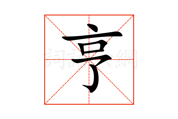 亨,通用规范汉字,二级汉字,序号3755,多音字,读音是(hēng 或 pēng),亠部,共7画,象形字,上中下结构,五行属水。