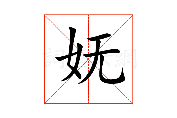 〔妩〕字是左右结构,可拆字为“女、无”,五行属木。