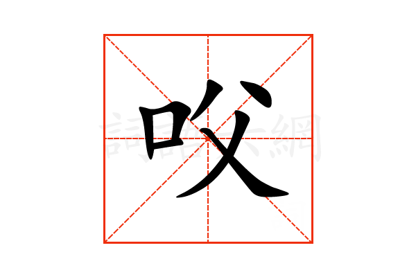 㕮,通用规范汉字,三级汉字,序号6592,读音是(fǔ),口部,共7画,左右结构。