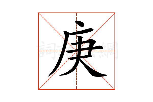 〔庚〕字是半包围结构,可拆字为“广、人、⺕”,五行属金。