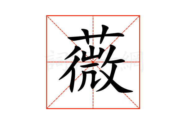 薇,通用规范汉字,一级汉字,读音是(wēi),艹部,共16画,上下结构,五行属木。