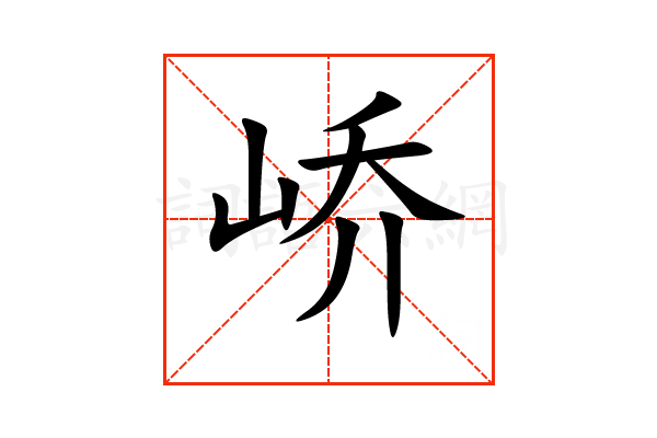 峤,通用规范汉字,二级汉字,序号4235,多音字,读音是(jiào 或 qiáo),山部,共9画,形声字,左右结构,五行属土。