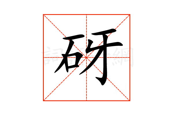 〔砑〕字是左右结构,可拆字为“石、牙”,五行属土。