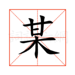 1某,通用规范汉字,一级汉字,序号1399,读音是(mǒu),木部,共9画,象形字,上下结构,五行属水。 某字概述 〔某〕字拼音是(mǒu),部首是木部,总笔画是9画。 〔某〕字是上下结构,可拆字为“甘、木”或“甘、朩”,五行属水。 〔某〕字造字法是象形。金文字形。像木上结一个果实,本是“梅”的象形。( méi )。本义是梅。 〔某〕字仓颉码是TMD,五笔是A...