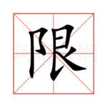 1限,通用规范汉字,一级汉字,序号1323,读音是(xiàn),阝部,共8画,形声字,左右结构,五行属金。 限字概述 〔限〕字拼音是(xiàn),部首是阝部,总笔画是8画。 〔限〕字是左右结构,可拆字为“阝、艮”或“⻖、艮”,五行属金。 〔限〕字造字法是形声。从阜,艮( gèn )声。阜,土山,与山势有关。本义是阻隔。 〔限〕字仓颉码是NLAV,五笔是BVEY...