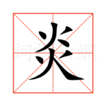 1炎,通用规范汉字,一级汉字,序号1237,读音是(yán),火部,共8画,会意字,上下结构,五行属火。 炎字概述 〔炎〕字拼音是(yán),部首是火部,总笔画是8画。 〔炎〕字是上下结构,二叠字 (上下二叠字),可拆字为“火、火”,五行属火。 〔炎〕字造字法是会意。从二火。本义是火苗升腾。 〔炎〕字仓颉码是FF,五笔是OOU,四角号码是90809,郑码是UO...