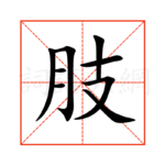 1肢,通用规范汉字,一级汉字,序号1182,读音是(zhī),月部,共8画,形声字,左右结构,五行属火。 肢字概述 〔肢〕字拼音是(zhī),部首是月部,总笔画是8画。 〔肢〕字是左右结构,可拆字为“月、支”或“⺼、支”,五行属火。 〔肢〕字造字法是形声。从肉,支声。本义是人的手足与鸟兽翼足的总称。 〔肢〕字仓颉码是BJE,五笔是EFCY,四角号码是74247...