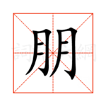1朋,通用规范汉字,一级汉字,序号1185,读音是(péng),月部,共8画,象形字,左右结构,五行属水。 朋字概述 〔朋〕字拼音是(péng),部首是月部,总笔画是8画。 〔朋〕字是左右结构,二叠字 (左右二叠字),可拆字为“月、月”,五行属水。 〔朋〕字造字法是象形。本义是古代货币单位。相传五贝为一朋。或说五贝为一系,两系为一朋。 〔朋〕字仓颉码是BB,五...