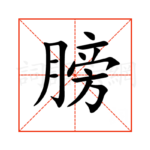 1膀,通用规范汉字,一级汉字,序号3134,多音字,读音是(bǎng 或 páng),月部,共14画,形声字,左右结构,五行属水。 膀字概述 〔膀〕字是多音字,拼音是(bǎng、páng),部首是月部,总笔画是14画。 〔膀〕字是左右结构,可拆字为“月、旁”或“⺼、旁”,五行属水。 〔膀〕字造字法是形声。从肉,旁声。本义是肩膀。 〔膀〕字仓颉码是BYBS,五笔...