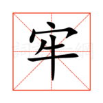 1牢,通用规范汉字,一级汉字,序号0880,读音是(láo),牛部,共7画,会意字,上下结构,五行属火。 牢字概述 〔牢〕字拼音是(láo),部首是牛部,总笔画是7画。 〔牢〕字是上下结构,可拆字为“宀、牛”,五行属火。 〔牢〕字造字法是象形指事。据甲骨文,里面是个“牛”字,外面象养牛的圈。泛指一般养性畜的栏圈( juàn )。本义是关养牛马等牲畜的圈。 〔牢...