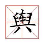 1舆,通用规范汉字,一级汉字,读音是(yú),臼部,共14画,形声字,上下结构,五行属金。 舆字概述 〔舆〕字拼音是yú,部首是臼,总笔画是14画。 〔舆〕字是上下结构,可拆字为“𦥑、车、一、八”或“、车”,五行属金。 〔舆〕字造字法是形声。从车,舁( yú )声。本义是车厢。 〔舆〕字仓颉码是HXKC,五笔是WFLW86,ELGW98,四角号码是77801...