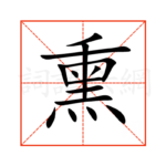 1熏,通用规范汉字,一级汉字,多音字,读音是(xūn或xùn),灬部,共14画,会意字,上下结构,五行属水。 熏字概述 〔熏〕字是多音字,拼音是xūn、xùn,部首是灬,总笔画是14画。 〔熏〕字是上下结构,可拆字为“𡈼、囗、丷、一、灬”,五行属水。 〔熏〕字造字法是俗作燻。会意。金文,上面象火烟冒出,中间是烟突(本古“窗”字),两点表示烟苔,下面是火焰。合起...