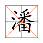 1潘,通用规范汉字,一级汉字,读音是(pān),氵部,共15画,形声字,左右结构,五行属水。 潘字概述 〔潘〕字拼音是pān,部首是氵,总笔画是15画。 〔潘〕字是左右结构,可拆字为“氵、番”,五行属水。 〔潘〕字仓颉码是EHDW,五笔是ITOL,四角号码是32169,郑码是VPKI,中文电码是3382,区位码是3743。 〔潘〕字的UNICODE是U+6F5...