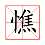 1憔,通用规范汉字,一级汉字,读音是(qiáo),忄部,共15画,形声字,左右结构,五行属木。 憔字概述 〔憔〕字拼音是qiáo,部首是忄,总笔画是15画。 〔憔〕字是左右结构,可拆字为“忄、焦”,五行属木。 〔憔〕字造字法是会意。从心,焦声。本义是憔悴,瘦弱萎靡的样子。也泛指折磨困苦。 〔憔〕字仓颉码是POGF,五笔是NWYO,四角号码是90031,郑码是U...